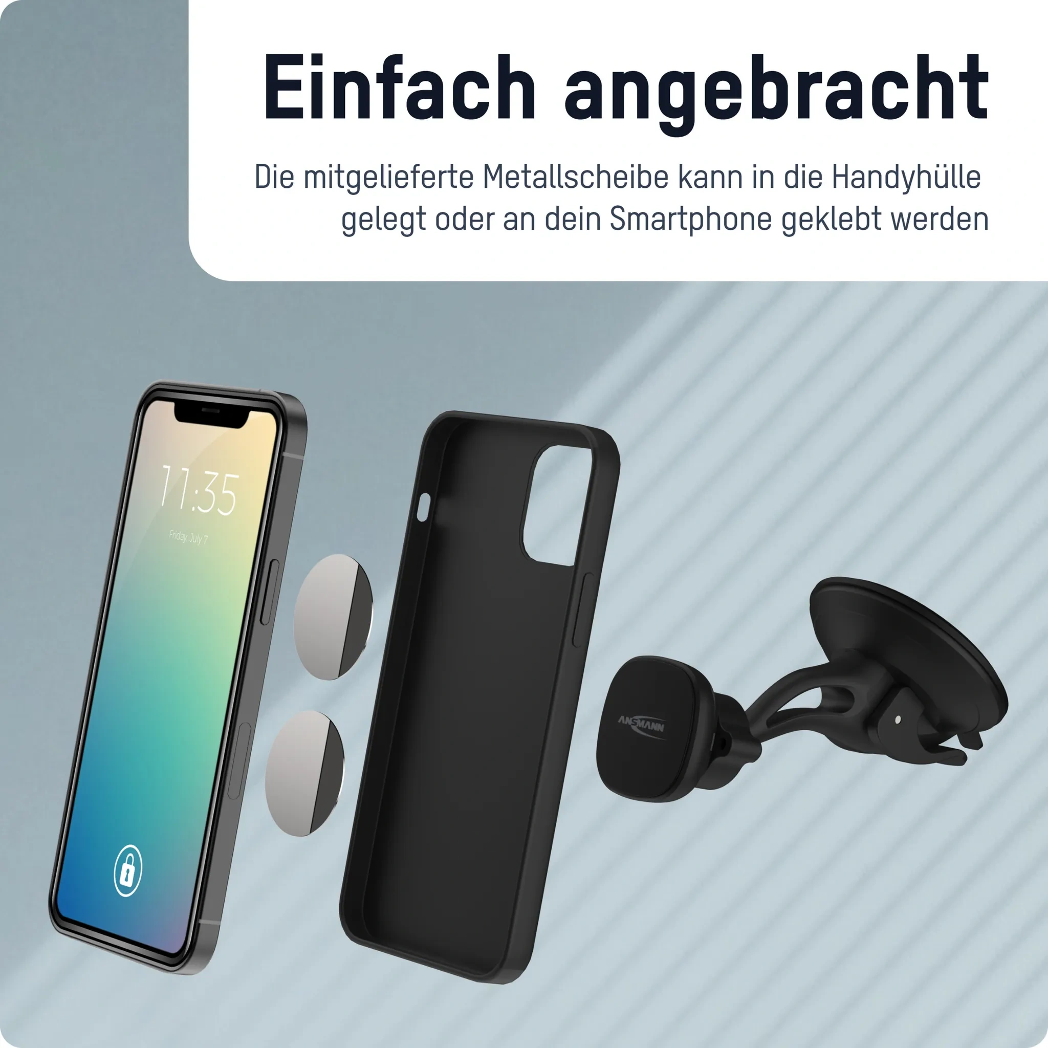 ANSMANN Handyhalter für PKW & LKW – Magnetische Smartphone-Halterung mit Saugnapf