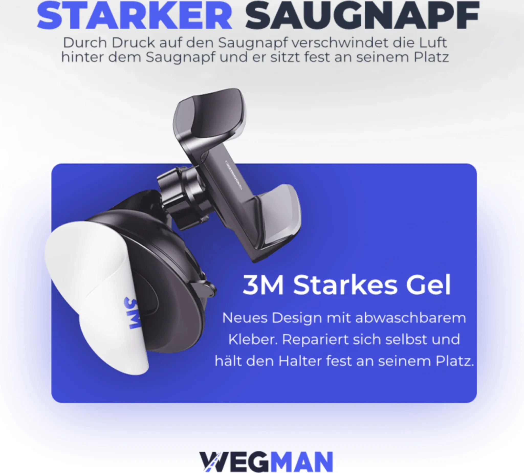 Produktinformationen "Wegman Universal Handyhalterung für Auto – Starker 3M-Gel Saugnapf & 360° Rotation"